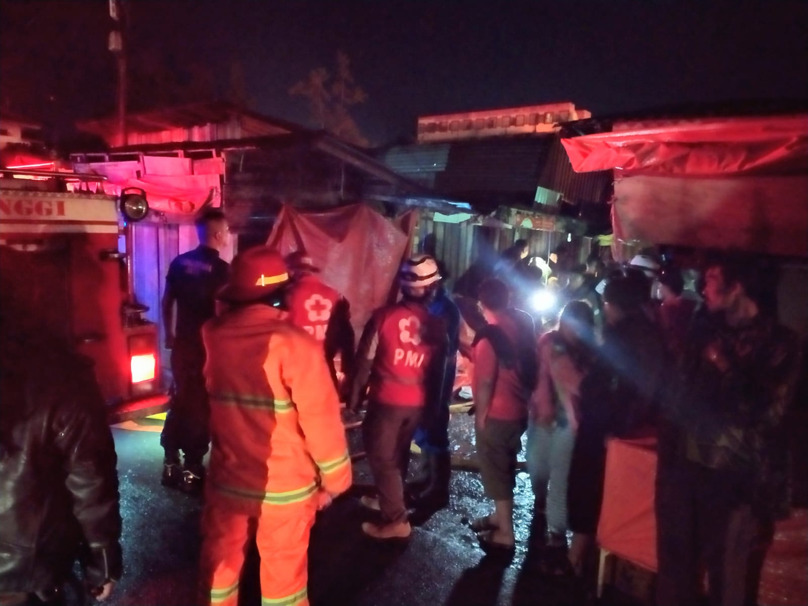 Kendaraan Damkar telah berusaha memadamkan si jago merah, 12 Armada pemadam kebakaran dari empat kabupaten dan kota dikerahkan membantu peristiwa naas Sabtu dini hari.