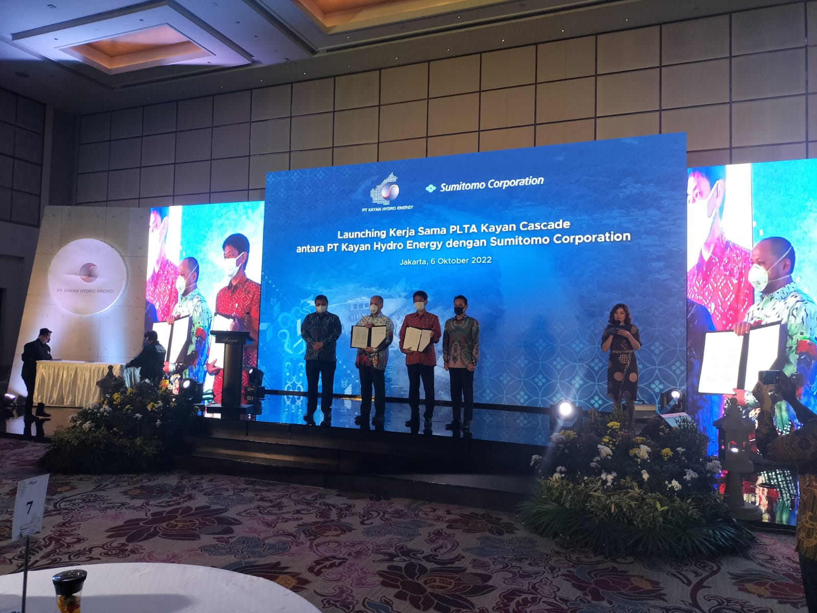 Launching agreement PT Kayan Hydro Energy dan Sumitomo Corporation yang digelar di Hotel Fairmont Jakarta, Kamis (6/10) berlangsung meriah. Selain dihadiri oleh Menko Perekonomian Airlangga Hartarto, Kepala KSP Jendral TNI Purn. Moeldoko, Dubes Jepang untuk Indonesia Mr Kanasugi Kenji, Head of Infrastructure Business Asia and Oceania Sumitomo Satoshi Matsui, Direktur Sumitomo Indonesia Kenichi Ishikawa, Chief Representative Sumitomo Corporation Jakarta Project Coordination Office Eko Permanahadi, Direktur Utama KHE Andrew Sebastian Suryali, Direktur Operasional KHE Khaeroni, Anggota DPR RI dari daerah pemilihan Kalimantan Utara Deddy Sitorus dan juga dihadiri wartawan nasional dan internasional.