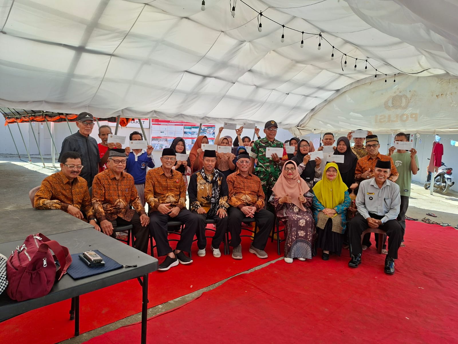 Korban Banjir bandang yang kini tinggal di hunian sementara (Huntara) 1, Nagari Puluik Puluik, Kecamatan IV Nagari Bayang Utara, Kabupaten Pesisir Selatan, mendapat bantuan uang tunai dari Persatuan Wredatama Republik Indonesia (PWRI) Provinsi Sumbar.