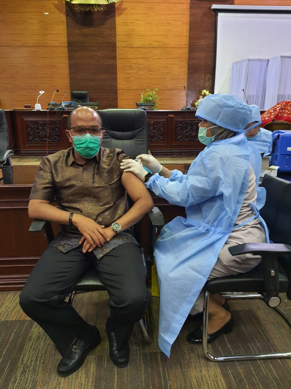 Sumbar, Sinerindo – Ketua Dewan Perwakilan Rakyat Daerah (DPRD) Provinsi Sumatera Barat, Supardi, menjalani vaksinasi Covid-19 dosis kedua di gedung DPRD Sumatera Barat, Senin, (12/4/2021).