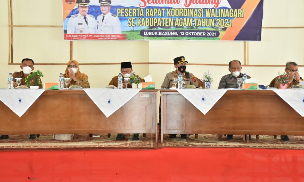 Lubukbasung, siberindo.co — Bupati Agam Dr.Andri Warman gelar rapat koordinasi perdana bersama seluruh camat dan walinagari se kabupaten Agam di Balairung Rang Agam, kompleks kediaman resmi bupati Agam, Selasa,(12/10).