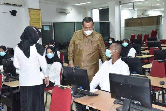 Padang, Siberindo.co— Wakil Walikota Pariaman, Mardison Mahyuddin meninjau pelaksanaan tes Calon Pegawai Negeri Sipil (CPNS) Kota Pariaman, yang diadakan di Labor Komputer Universitas Putra Indonesia (UPI), Kota Padang, Selasa (12/10).