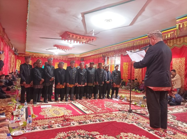 Ketua Umum Lembaga Kerapatan Adat Alam Minangkabau (LKAAM) Sumbar Dr Fauzi Bahar, M.Si Datuak Nan Sati mengukuhkan sekaligus memberikan kata-kata Pati Ambalau untuk Pengurus Kerapatan Adat Nagari (KAN) Lubuk Basung periode 2022-2025, Kabupaten Agam, Sabtu (12/11/2022) pagi.