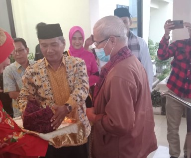 Dalam penyambutan ini, Kadis PMD Sumbar Amasrul SH memasangkan kain tenun sebagai atribut khas Minangkabau kepada Wagub Lukman Abunawas. Ia tampak senyum dan senang atas penyambutan yang begitu hangat dari tuan rumah Pemprov Sumbar.