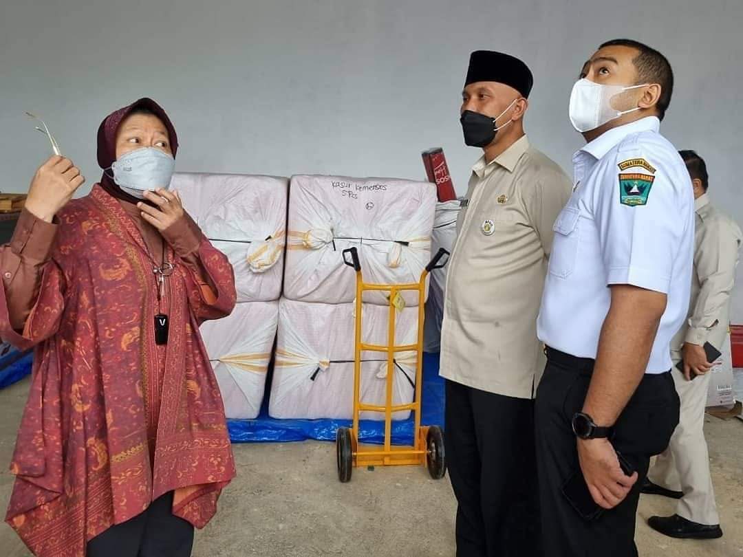 Gubernur Sumatera Barat Mahyeldi dan Wakil Gubernur Audy Joinaldy menyambut langsung kedatangan Mensos Tri Rismaharini di Bandara Internasional Minangkabau (BIM), Rabu (12/5/2021).