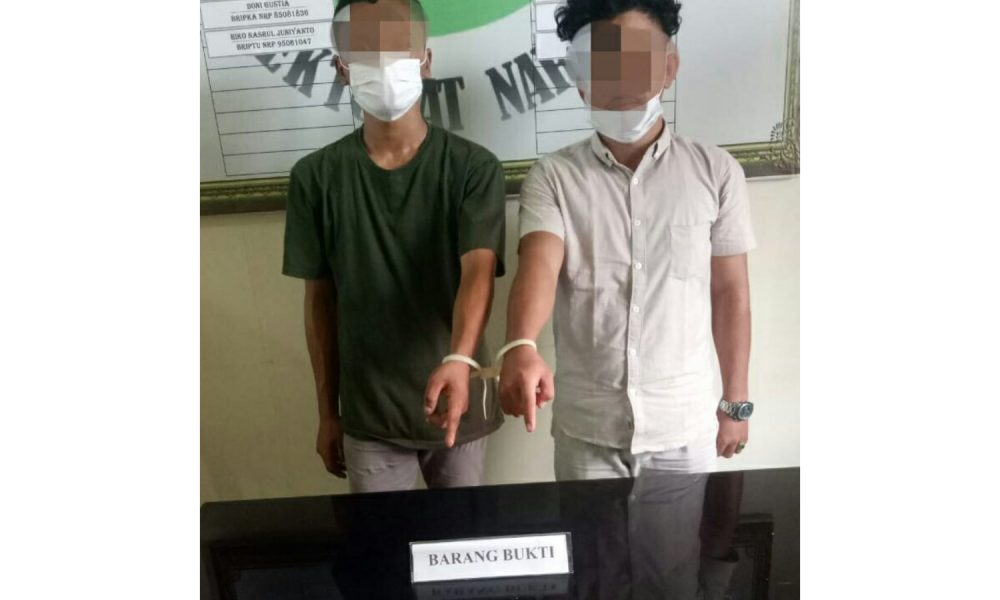 Dua tersangka yang diamankan masing-masing berinisial JNS, (19) dan RS, (18) bersama barang bukti narkotika jenis ganja yang dipimpin langsung Kasat. ResNarkoba Polres Agam.