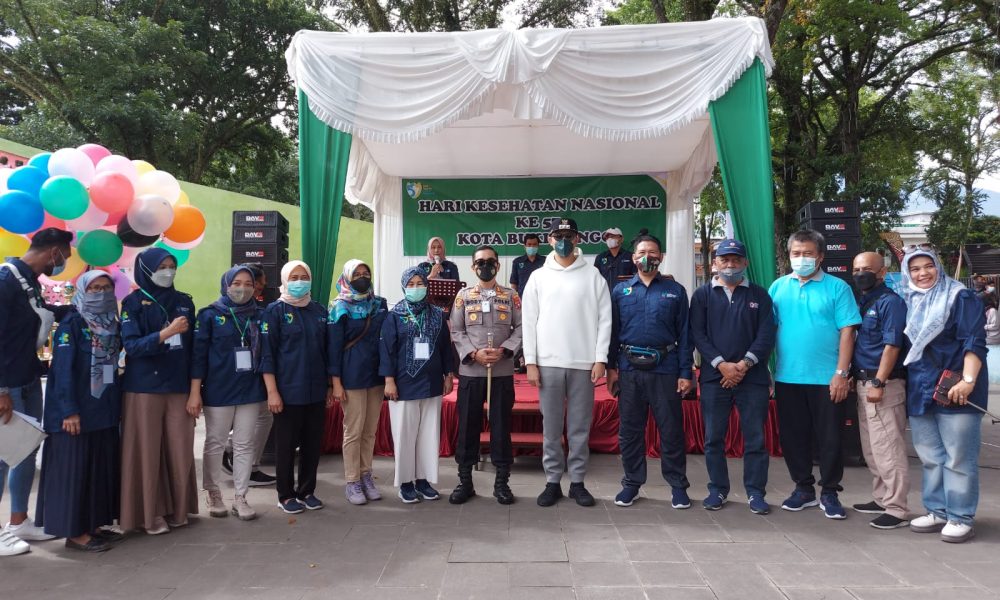 Bukittinggi, siberindo.co — Pemerintah Kota Bukittinggi peringati Hari Kesehatan Nasional (HKN) ke 57, kegiatan puncak dipusatkan di pelataran pedestrian Jam Gadang, Sabtu (13/11). Ketua panitia HKN ke 57 Bukittinggi, dr. Fathimah Yasin, Sp.PK, menjelaskan, setiap tanggal 12 November diperingati Hari Kesehatan Nasional. Untuk tahun ini, diangkat tema “Sehat Negeriku Tumbuh Indonesiaku”. “Tema ini mengandung makna untuk menjadikan HKN sebagai momentum kembali mengedukasi warga, untuk meningkatkan pola bersih hidup dan sehat serta meningkatkan protokol kesehatan,” ungkapnya. Pada HKN ke 57 di Bukittinggi ini, panitia menggelar berbagai perlombaan yang dimulai tanggal 7 November. Kegiatan pertandingan olahraga badminton, tenis meja dan voli. Selanjutnya juga dilaksanakan lomba cipta lagu dengan tema kesehatan, lomba tiktok dengan tema mengajak vaksinasi, lomba pembuatan video dan lomba poster.