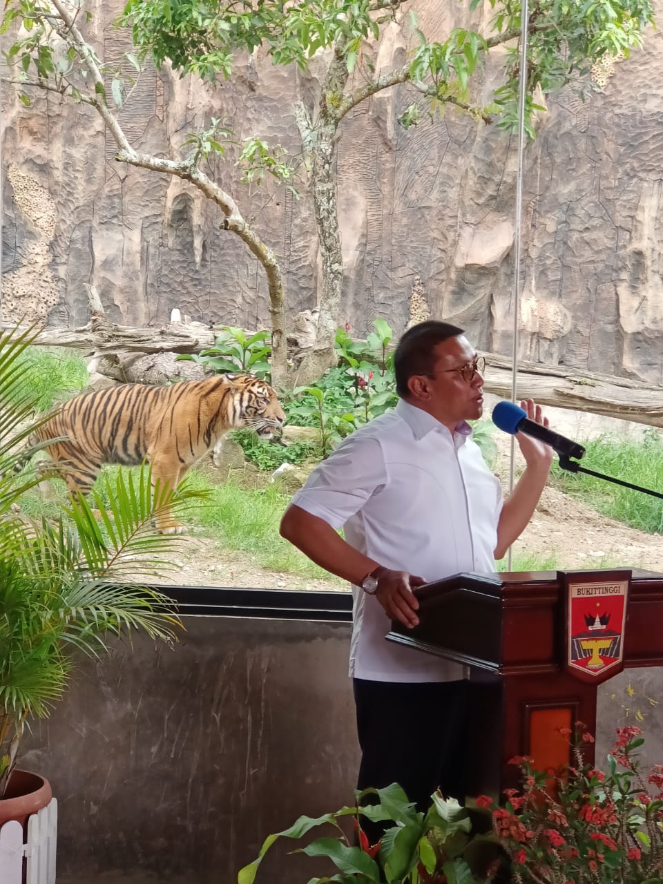 Walikota Bukittinggi dipenghujung jabatannya meresmikan zona kandang Harimau dibalik kaca meskipun bangunan belum selesai sepenuhnya.