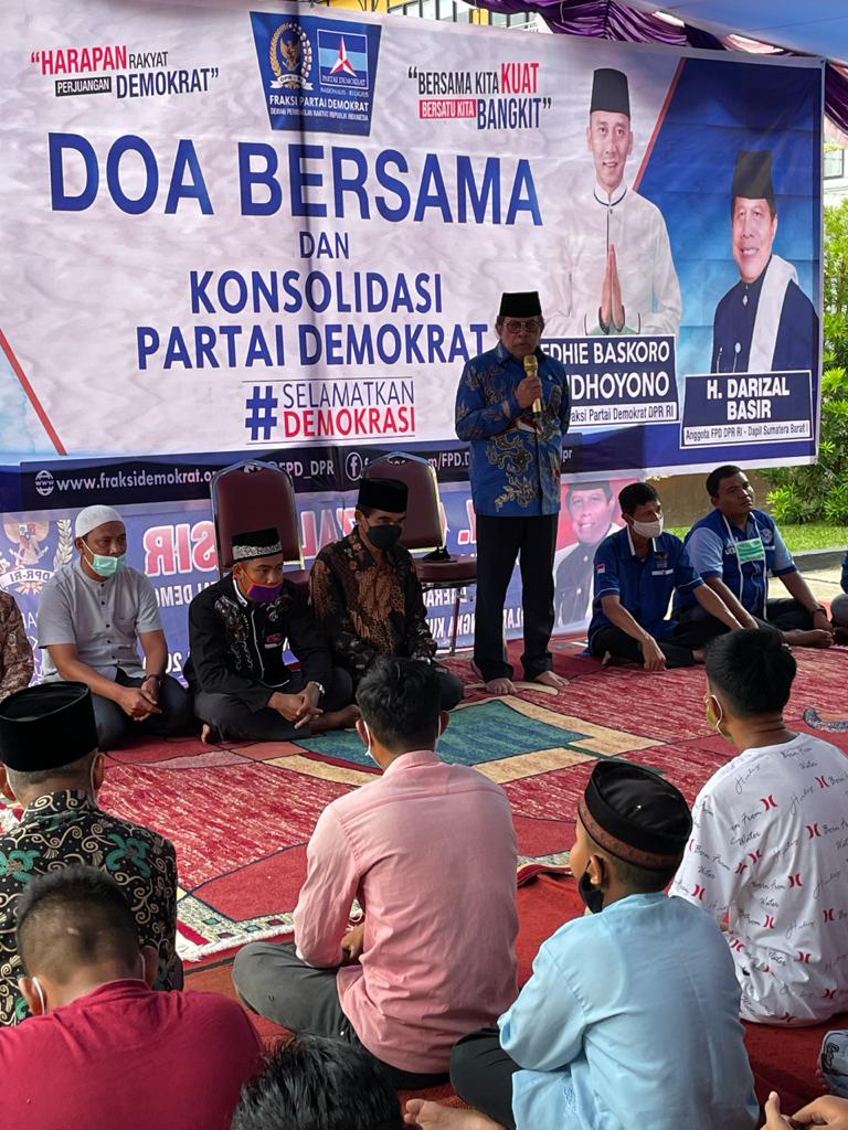 Anggota DPR RI Fraksi Partai Demokrat H. Darizal Basir bersama Pengurus dan kader Partai Demokrat se Pesisir Selatan, Sumbar, menggelar Doa Bersama dan kebulatan tekad mendukung Ketua Umum yang sah Agus Harimurti Yudhoyono, serta dengan tegas menolak Ketua Umum versi KLB Deli Serdang.