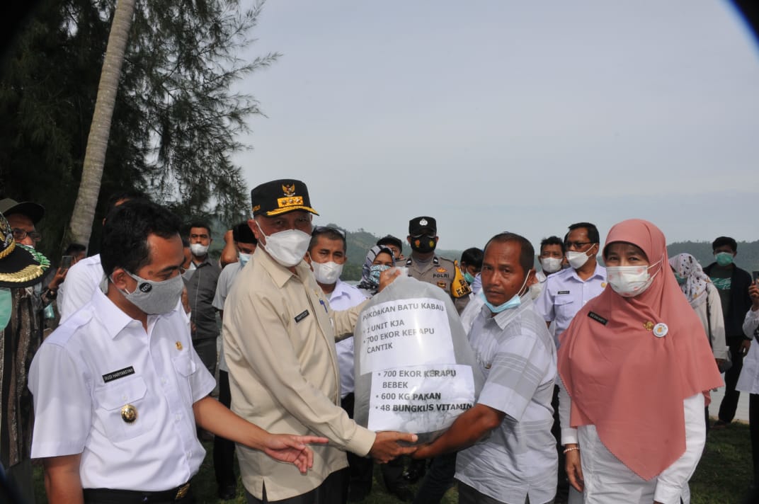 Hal ini disampaikan Gubernur Sumatera Barat Mahyeldi Ansharullah di sela-sela sambutan menyapa masyarakat nelayan Pesisir Selatan dalam acara penyerahan paket bantuan budidaya kerapu di Balai Benih Ikan Sungai Nipah Kabupaten Pessel, Rabu (14/7/2021).
