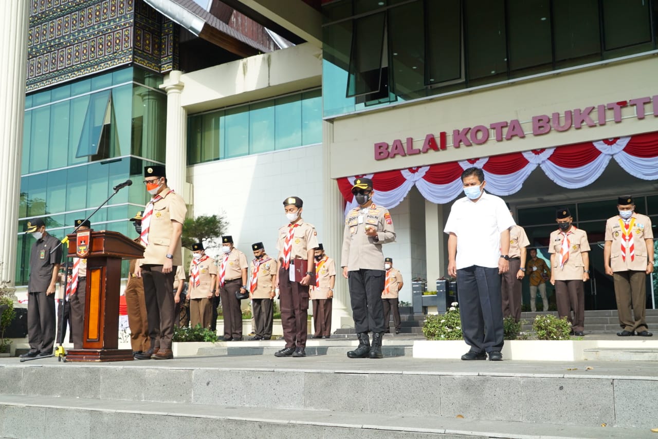 Bukittinggi, siberindo.co — Hari Ulang Tahun Pramuka dan Peringatan Gerakan Pramuka ke 60 tahun 2021 di Bukittinggi dilaksanakan dengan Apel Besar di Halaman Balaikota Bukittinggi, Sabtu (14/08).