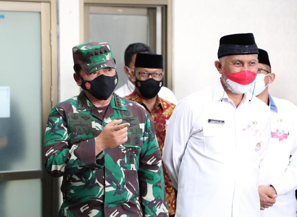 Hal tersebut disampaikan Panglima TNI Marsekal TNI Hadi Tjahjanto, S.I.P. didampingi Kapolri Jenderal Pol Drs. Listyo Sigit Prabowo, M.Si. saat memimpin Rapat terkait penanganan Covid-19, yang diikuti oleh jajaran Forkopimda Sumatera Barat dan dilanjutkan pengecekan aplikasi Silacak dan Inarisk, bertempat di Kantor Walikota Padang, Sumatera Barat, Jumat (13/8/2021).