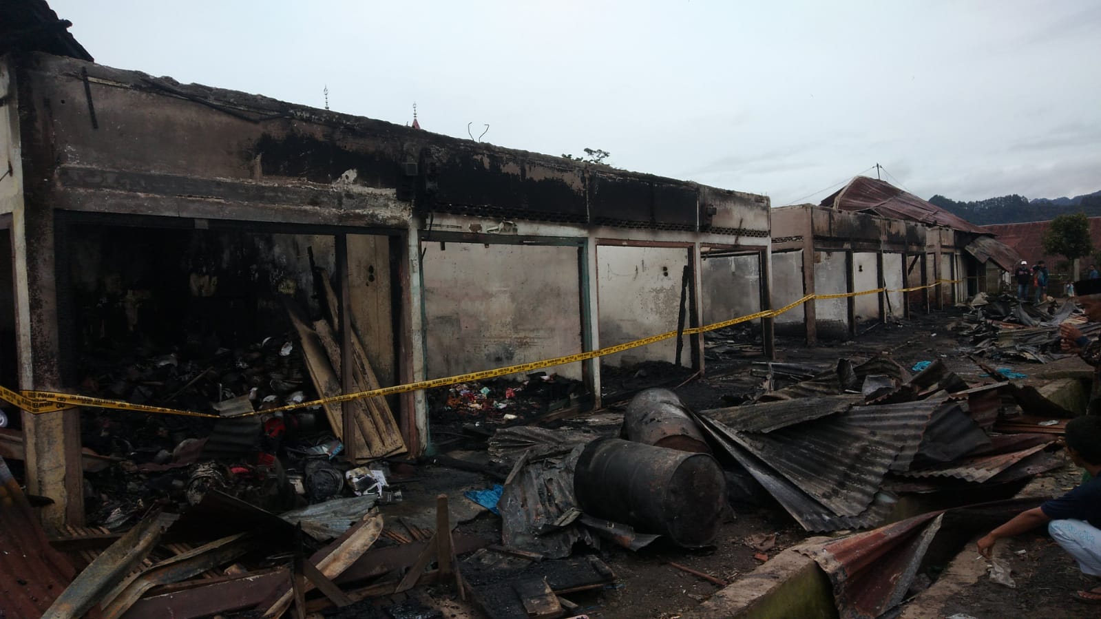 Baso, siberindo.co — Usai dinyatakan padam menjelang subuh, Selasa,(14/9) usai menghanguskan 24 petak toko di Blok G, kompleks Pasar Baso, api kembali berkobar di lokasi yang sama, sekitar pukul 09.00 WIB.