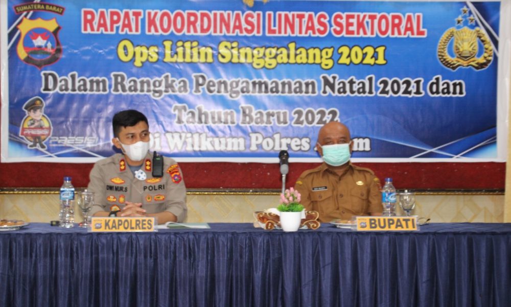 Lubukbasung, siberindo.co — Jelang libur Natal dan Tahun Baru 2022 (Nataru), jajaran Forkopimda Agam gelar rapat koordinasi pengamanan operasi lilin Singgalang yang dipimpin Kapolres Agam AKBP. Dwi Nur Setiawan, di aula Wibisono, Polres Agam, Selasa,(14/12).