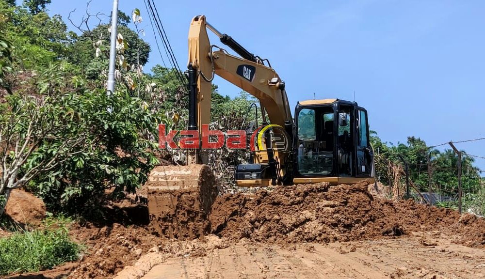 Pembersihan material longsor yang menimbun ruas jalan sejak sepekan lalu, baru ditangani Sabtu, (14/1) siang, menggunakan alat berat milik DLH Agam yang standby di area TPA Sampah Cumateh tersebut.