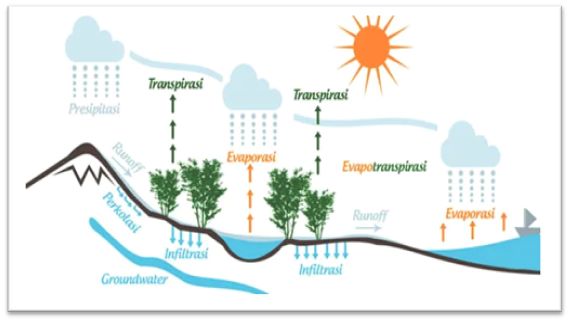 Istilah-istilah dalam siklus hidrologi sebagai berikut: