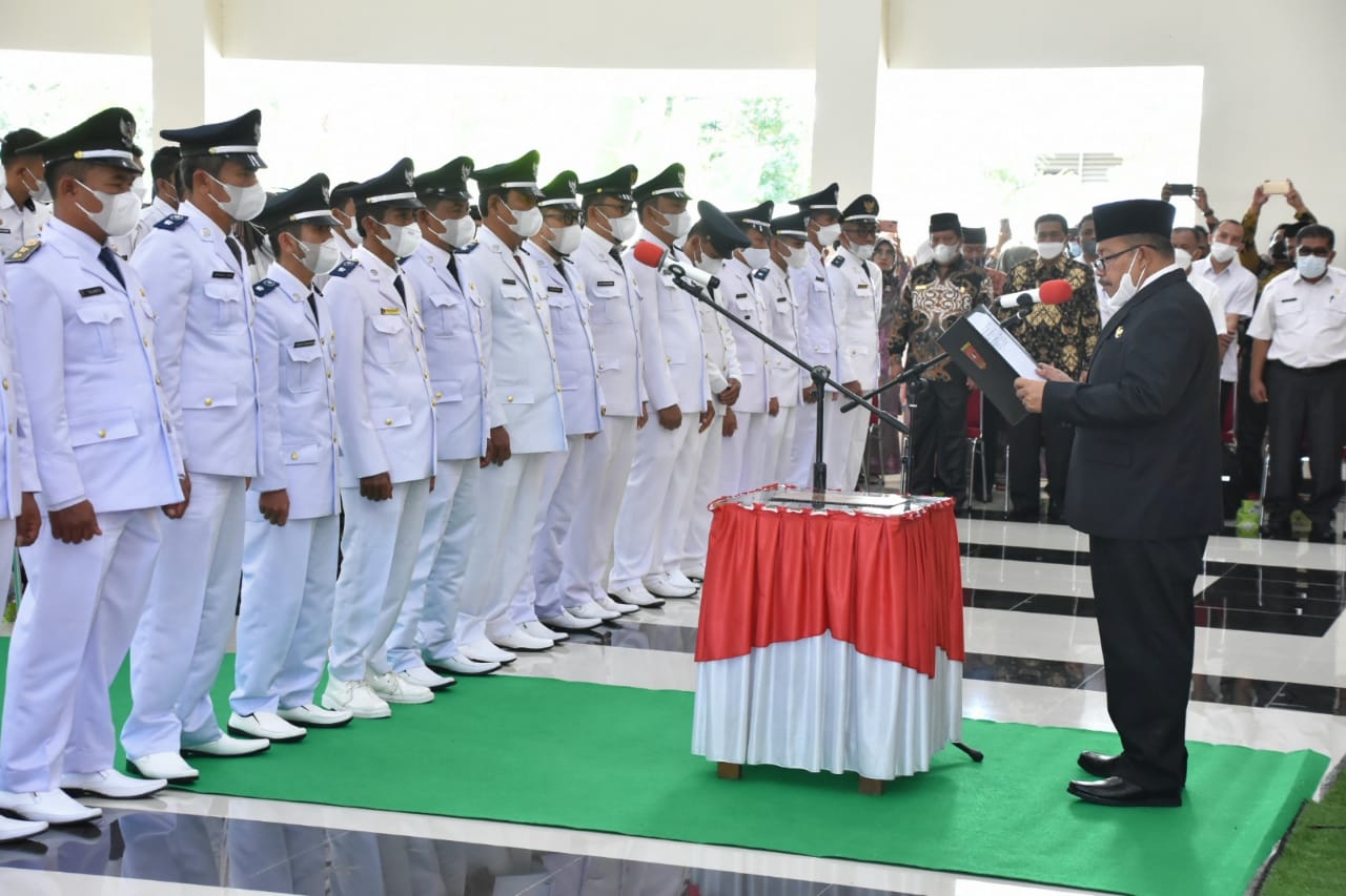 Lubukbasung, Siberindo.co — Bupati Agam Dr.H.Andri Warman lantik 25 walinagari terpilih hasil Pemilihan Walinagari Serentak 2021 sistim e-votting di Balairung Rang Agam, kompleks kediaman resmi bupati Agam, Rabu,(14/12). Prosesi pelantikan dihadiri unsur Forkopimda Agam, unsur pimpinan Pemkab.Agam dan para tokoh ninik mamak dari nagari yang dilantik.