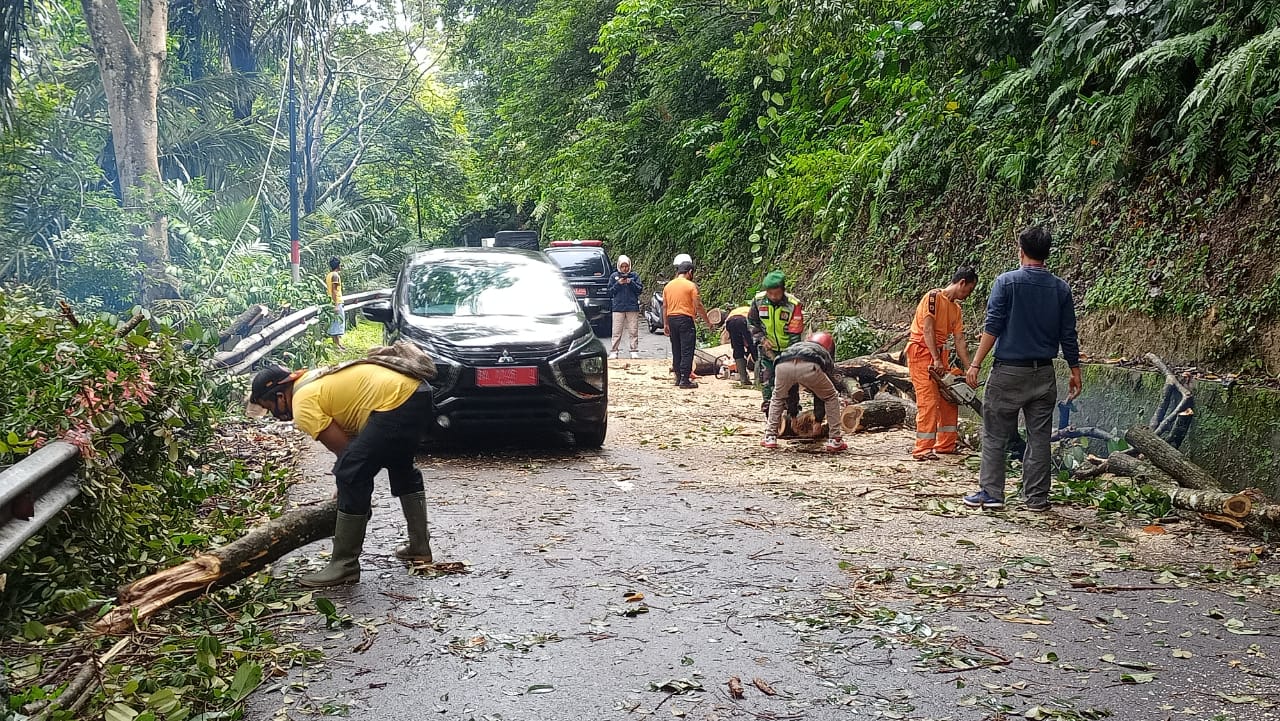 Ia menambahkan, sebelumnya sebuah pohon besar berukuran panjang sekitar 10 meter itu tumbang pada Rabu pagi sekitar pukul 09.30 WIB. Tumbangnya pohon tersebut diduga kibat akarnya yang lapuk dan kondisi tanah labil.