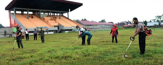 Pariaman, Siberindo.co — Jelang peringatan Hari Kemerdekaan Republik Indonesia yang ke-75, Pemerintah Kota Pariaman bersama Kodim 0308 Pariaman (TNI) dan Polres Pariaman (Polri) menggelar gotong royong bersama di bekas GOR Rawang yang saat ini dijadikan sebagai Youth Center, Minggu (16/8/2020).