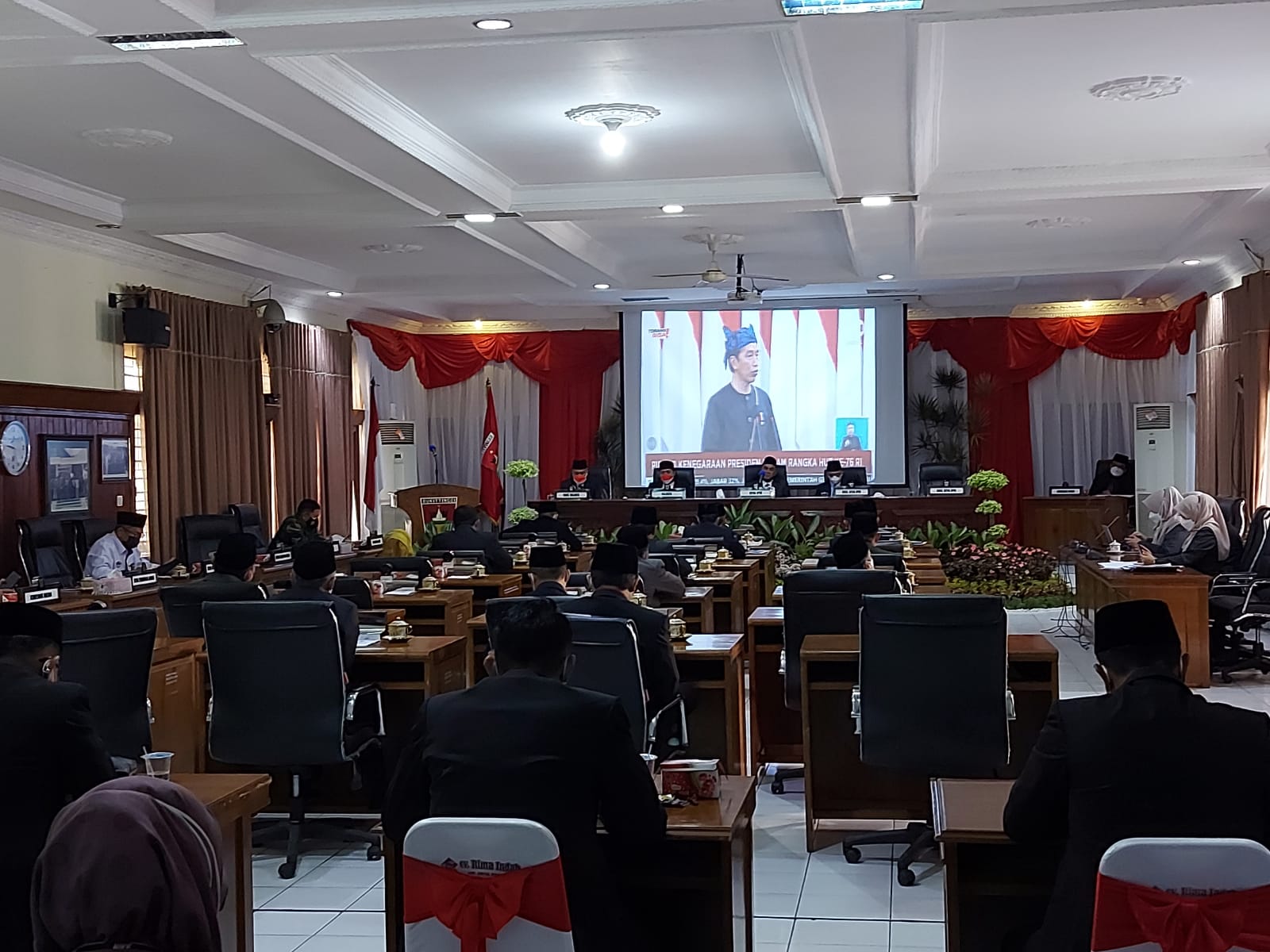 Bukittinggi, siberindo.co — Pemerintah Kota Bukittinggi bersama DPRD Bukittinggi, dengarkan Pidato Kenegaraan Presiden Indonesia, dalam rangka HUT RI ke 76 tahun 2021. Paripurna istimewa dilaksanakan di Gedung DPRD, Senin (16/08), diikuti Unsur Forkopimda, Pj Sekda dan sejumlah Kepala SKPD.