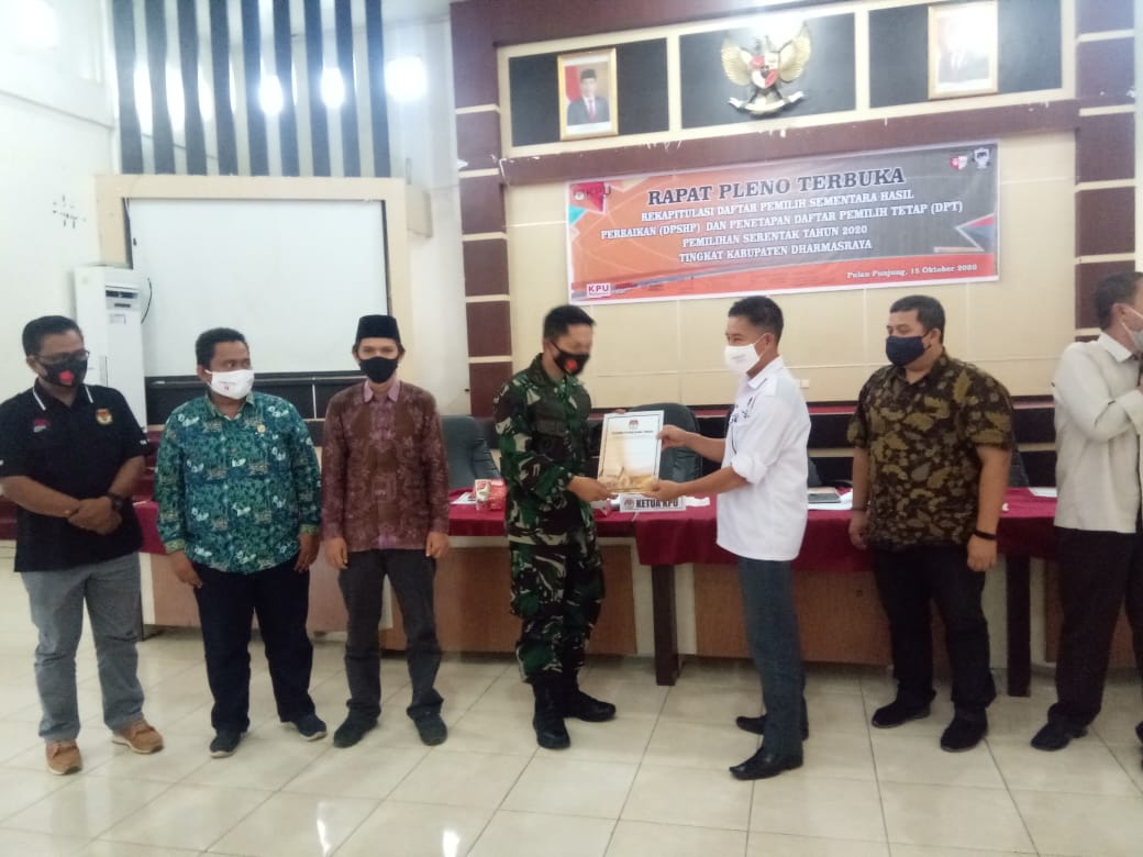 Rapat Pleno Terbuka Rekapitulasi Daftar Pemilih Sementara Hasil Perbaikan yang ditetapkan sebagai DPT Pilkada kabupaten Dharmasraya tahun 2020 diikuti seluruh jajaran KPU, tim kedua pasangan calon, Plt Bupati, Dandim 0310, Kapolres, anggota Bawaslu dan Disdukcapil kabupaten Dharmasraya. (rsy)