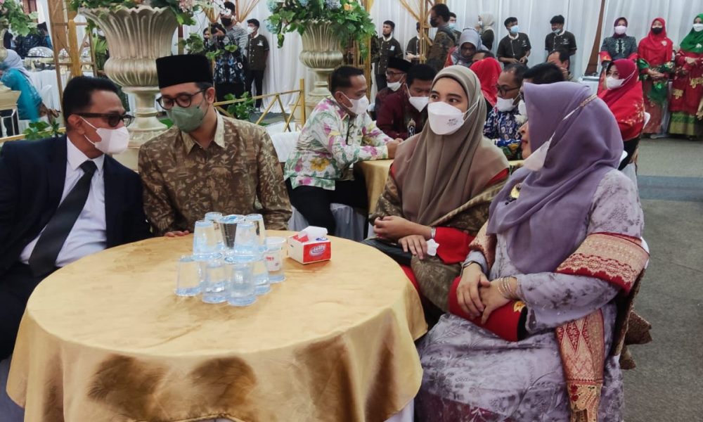 Walikota Bukittinggi Erman Safar dalam sambutan pembuka acara alek terlihat sangat bahagia dengan prosesi pernikahan anak pertama sekdako Bukittinggi yang baru dilantiknya Jumat, (8/10) di Pendoko Kota Bukittinggi.