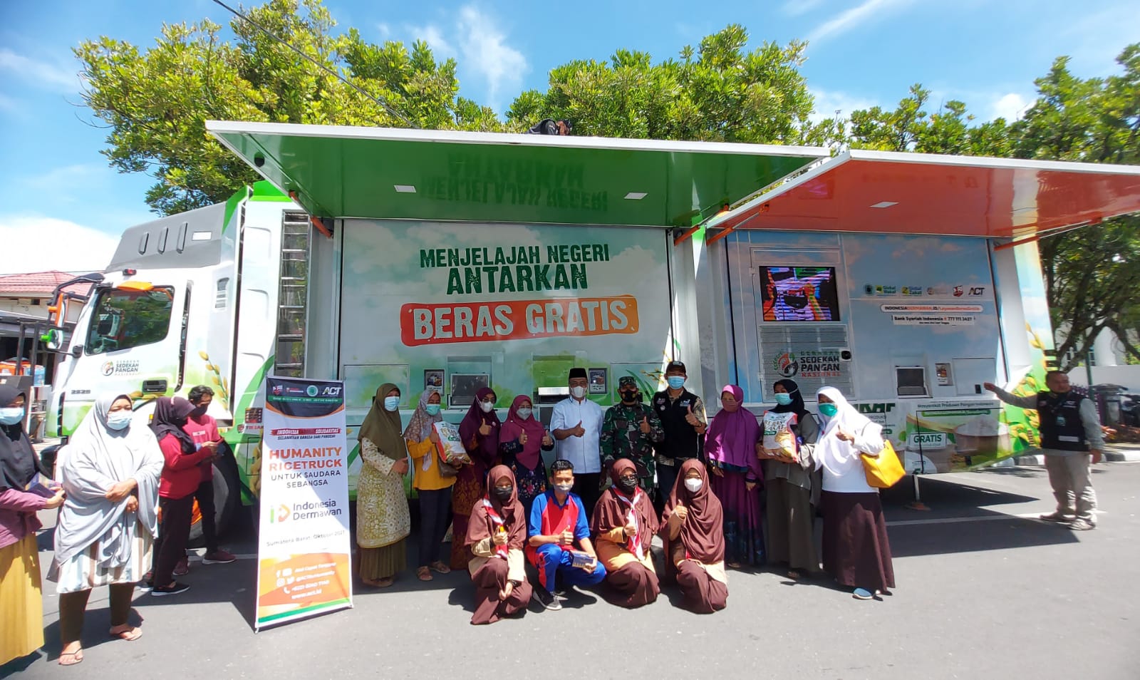 Bukittinggi, siberindo.co — Wakil Wali Kota Bukittinggi bersama Aksi Cepat Tanggap (ACT) launching operasi pangan gratis dalam bentuk beras, melalui Humanity Ricetruck/ ATM beras yang berbentuk Truck. Kegiatan ini dilanuching di rumah dinas Waki Wali Kota Bukittinggi, Sabtu (16/10).