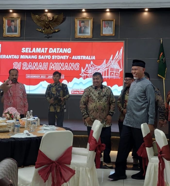 “Pemerintah Provinsi Sumatera Barat sangat senang menerima kehadiran para perantau dari Sydney. Kehadiran bapak-bapak dan ibu-ibu serta anak-anak sekalian mengokohkan tali silaturahmi antara ranah dan rantau. Sudah sepantasnya para perantau pulang kampung untuk memperkenalkan anak-anak dan cucu-cucu tanah leluhur mereka. Tanah yang kuat dengan kungkungan Adat Basandi Syarak, Syarak Basandi Kitabullah (ABS-SBK)”, kata Gubernur.