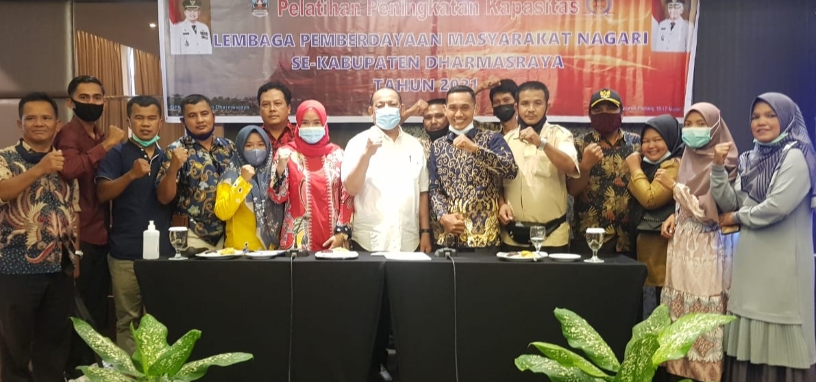 Pelatihan LPM ini dibuka oleh Bupati Dharmasraya yang diwakili Plt Kadis PMD Dharmasraya Hasto Kuncoro, M.Pd., yang didampingi Kabid Kelembagaan Masyarakat Dwi Revita Kemala, SE.MM, dengan nara sumber dari beberapa pakar pemerintahan dan pemberdayaan.
