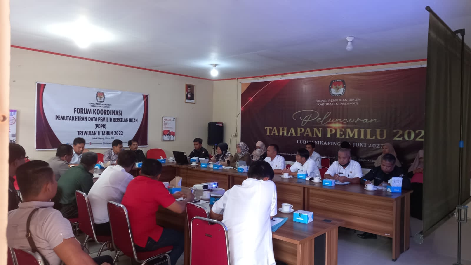 Pasaman, siberindo.co — KPU Kabupaten Pasaman gelar Forum Koordinasi Pemutakhiran Data Pemilih Berkelanjutan (PDPB) Triwulan II Tahun 2022, di Media Center KPU Kabupaten Pasaman, Rabu (15/06) lalu.