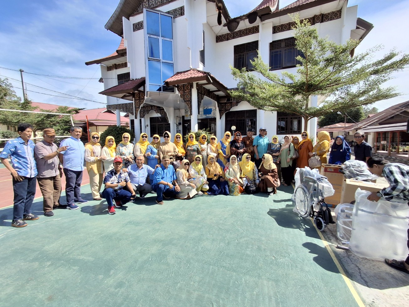 Silaturahmi dan bergembira dengan para penghuni Panti Sosial Tresna Werdha Kasih Sayang Ibu itu juga diisi Pengurus PWRI Sumbar dengan menyerahkan buah tangan berupa 3 kursi roda, 7 unit wolker, 5 buah tongkat lansia dan 5 buah kursi untuk sholat.