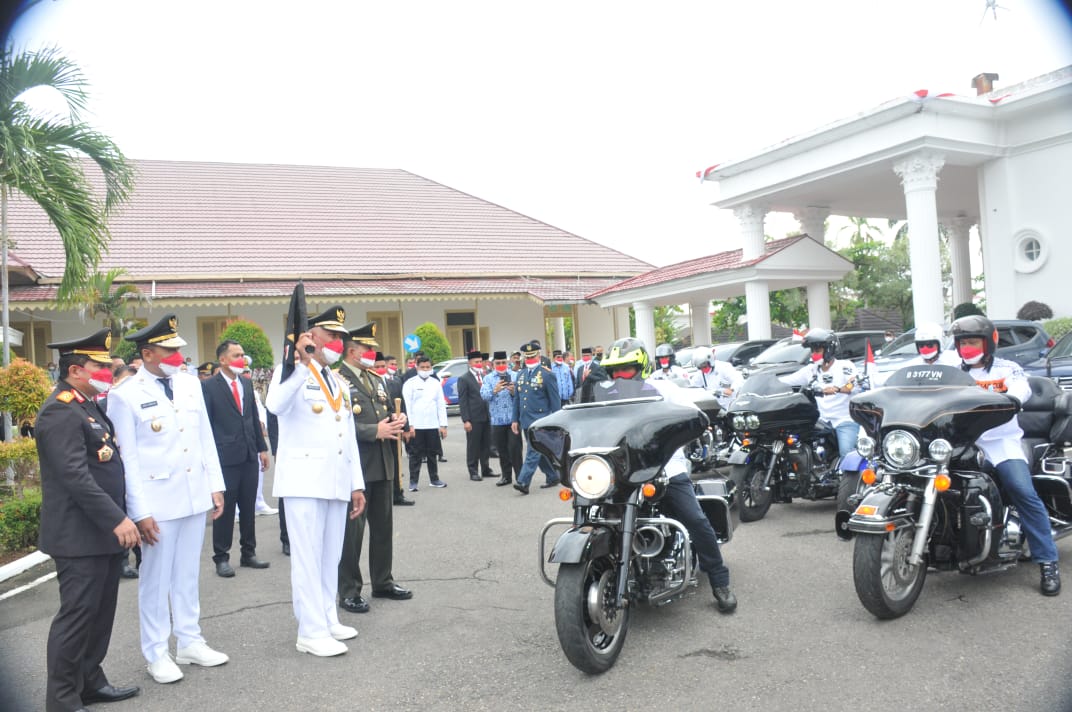 Gubernur dan Wakil Gubernur Sumbar Mahyeldi – Audy Joinaldy bersama Kapolda Sumbar Irjen Pol. Toni Hermanto, Danrem 032/Wirabraja Brigjen TNI Arief Gajah Mada, Danlantamal Laksamana Pertama TNI Hargianto dan Danlanud Sutan Sjahrir Kolonel PNB M.R.Y. Fahlefie melepas rombongan Komunitas Motor Besar Harly Davidson bernama Pertugal Padang Motor Club Padang yang melakukan touring Keliling Kota Padang guna melakukan agenda sosial dalam rangka memeriahkan HUT Kemerdekaan RI ke-76.