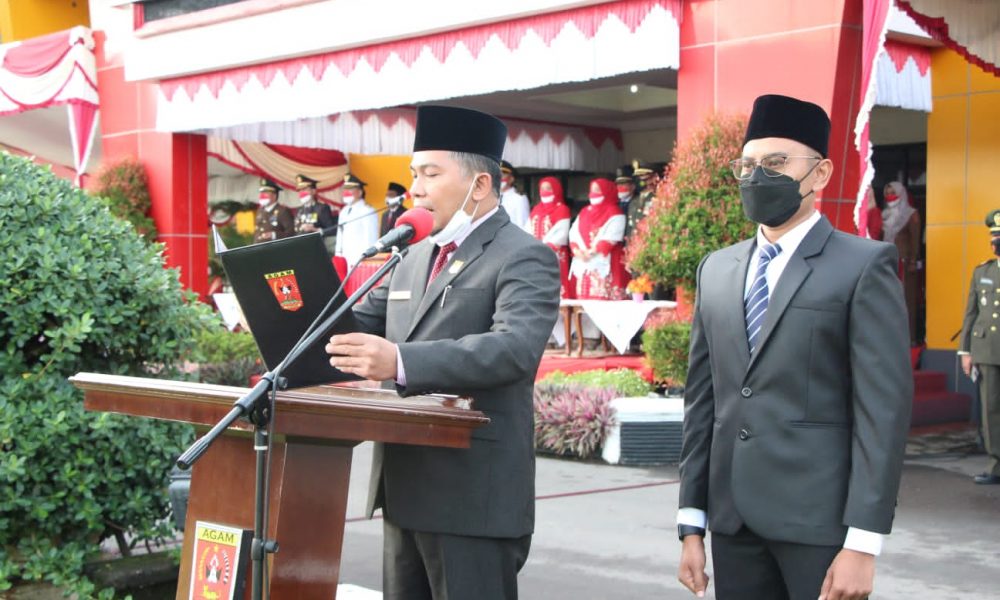 Lubukbasung, siberindo.co — Prosesi puncak peringatan HUT RI ke-76 Kabupaten Agam yang dipusatkan di halaman depan kantor Bupati Agam, Selasa,(17/8) berlangsung khitmad dan sukses. Seluruh rangkaian upacara bisa terlaksana dengan baik, berkat matang dan optimalnya persiapan yang dilakukan tim pendukung.