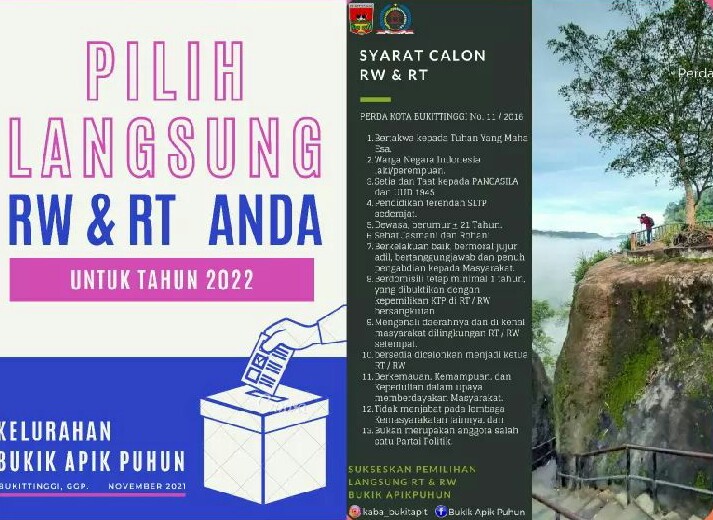 Lurah BAP, menambahkan, proses pemilihan ini menjadi salah satu implementasi dari Perda Kota Bukittinggi nomor 11 tahun 2016. Sehingga pemilihan Ketua RT dan RW memang murni berdasarkan pilihan dari masyarakat. “Saat ini kita masih menjaring bakal calon Ketua RT dan RW. Ada 5 RW dan 15 RT yang akan dipilih langsung oleh warga Bukik Apik sendiri. Tujuannya bagaimana masyarakat lebih memahami demokrasi dan semakin tinggi dalam tingkat partisipasi pemilih pada pemilu mendatang,” tambahnya.