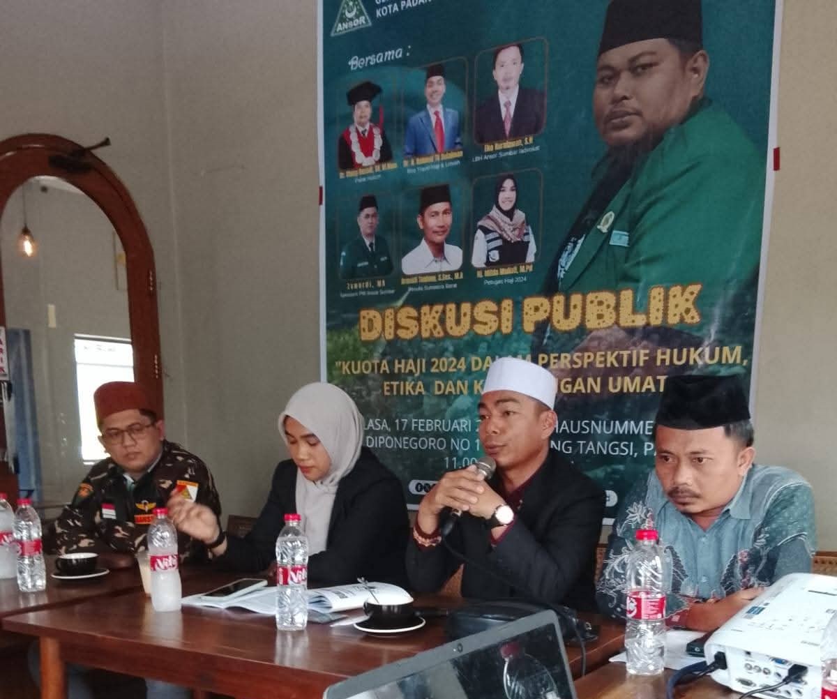 Siberindo.co- Diskusi terkait haji tidak akan pernah habisnya, mulai dari sebelum keberangkatan, hari H sampai kepulangan ke tanah air jadi hal menarik didiskusikan secara komprehensif. Hal ini jadi poin penting dari diskusi publik dengan tema “Kuota Haji 2024 Dalam Perspektif Hukum Etika dan Kepentingan Umat” yang diselenggarakan Pimpinan Cabang Gerakan Pemuda Ansor Kota Padang, Lembaga Bantuan Hukum (LBH) GP Ansor PW Sumatera Barat dan pihak terkait pada Selasa (17/2/2026) di salah satu cafe di Kota Padang. Peserta perwakilan dari PW GP Ansor Sumatera Barat, PC GP Ansor Solok, PC GP Ansor Bukittinggi, PC GP Ansor Pesisir Selatan dan sebagainya.