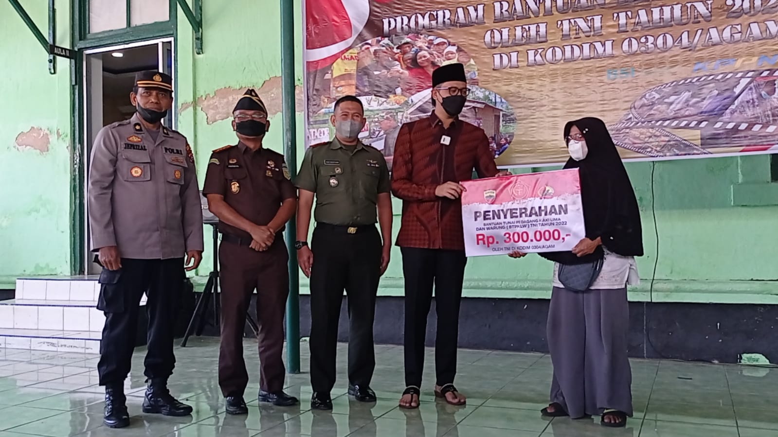 Bukittinggi, siberindo.co — TNI-Polri serahkan bantuan tunai untuk Pedagang Kaki Lima (PKL) dan warung Kota Bukittinggi. Bantuan diserahkan secara simbolis oleh Wali Kota Bukittinggi, Dandim 0304 Agam, Ketua DPRD dan Kajari di Makodim 0303 Agam, Rabu (18/05). Dandim 0304 Agam, Letkol. Arh. Yosip Brozti Dadi, menjelaskan, bantuan tunai untuk PKL dan warung 2022 yang diserahkan oleh Mabes TNI melalui Kodim 0304 Agam ini targetnya 6000 paket selama 8 hari.