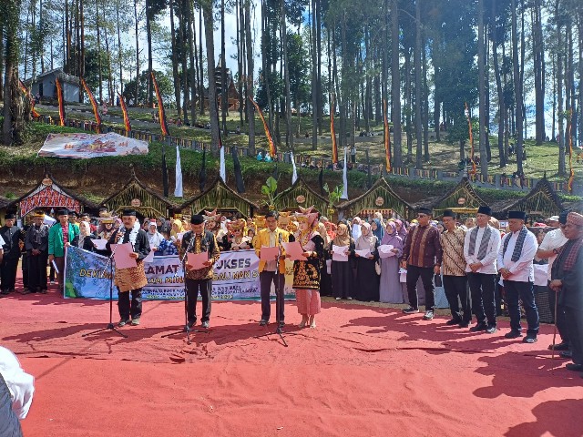 Tokoh nasional Mantan Panglima TNI Jenderal (Purn) Gatot Nurmantyo dan Dr Bachtiar Chamsyah menghadiri Deklarasi “Piagam Minangkabau Nan Sapuluah” di Bukit Marapalam, Puncak Pato, Nagari Batu Bulek, Kecamatan Lintau, Tanah Datar (Sumbar) Sabtu (17/6/2023) siang.