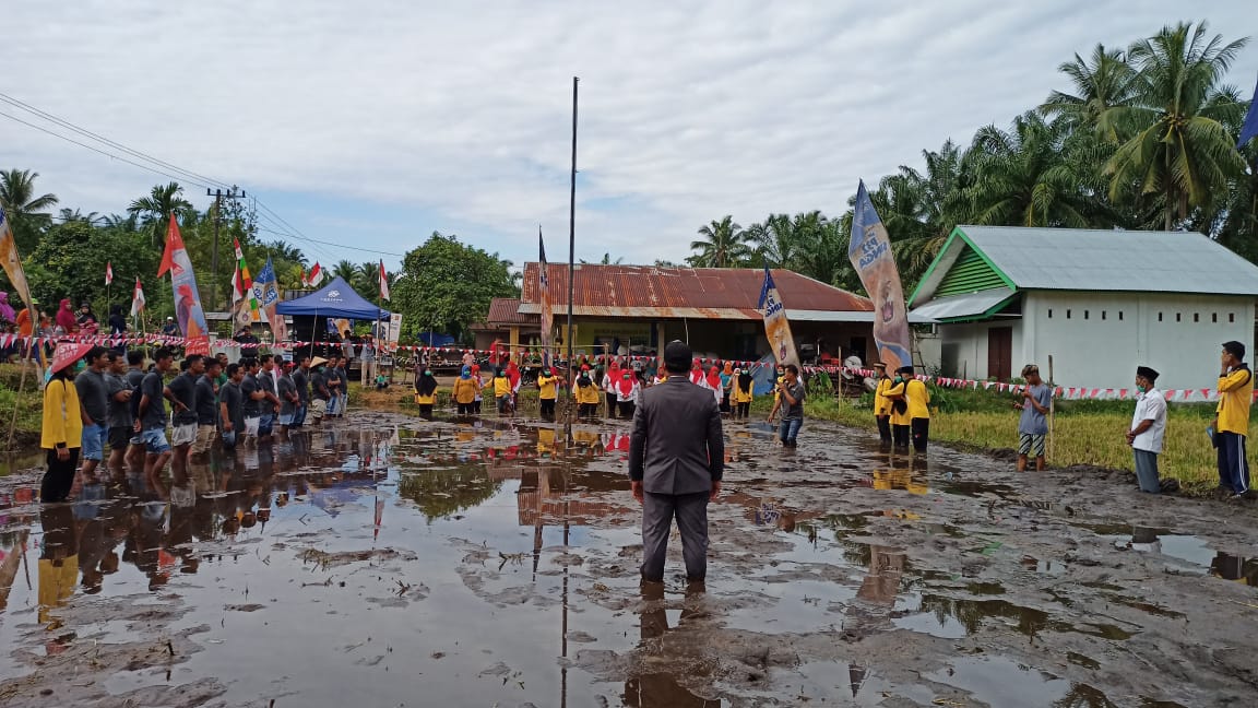 Walaupun upacara digelar ditengah sawah yang berlumpur, para pengibar bendera berhasil menjalankan tugasnya dengan baik, dan para peserta upacara mengikuti upacara dengan penuh khidmat.