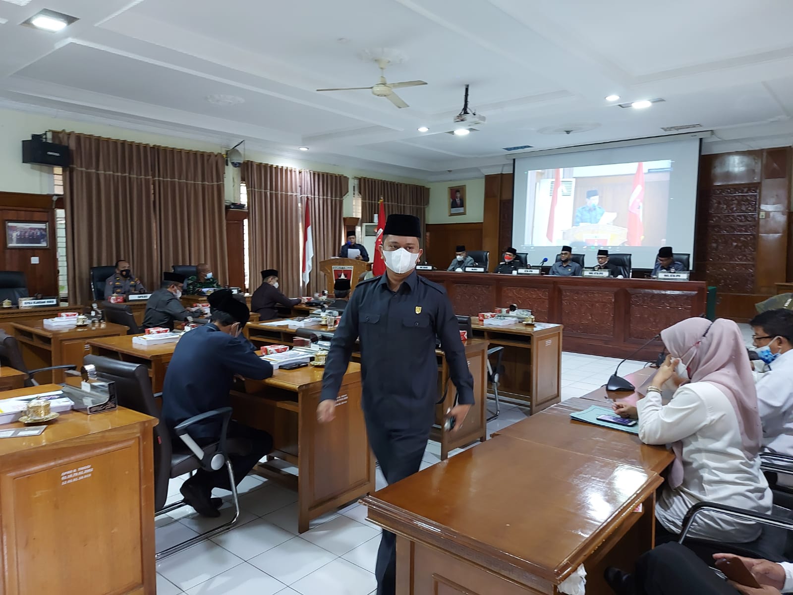 Setelah adanya beberapa intErupsi dan masukan dari anggota dewan lainnya, sidang paripurna dengan agenda pemandangan umum terhadap ranperda penambahan modal BPRS Jam Gadang dan hantaran R-KUPA PPAS APBD TA 2021, tetap dilanjutkan dengan pimpinan sidang, Ketua DPRD, Herman Sofyan. (Ophik/KABA12.com)