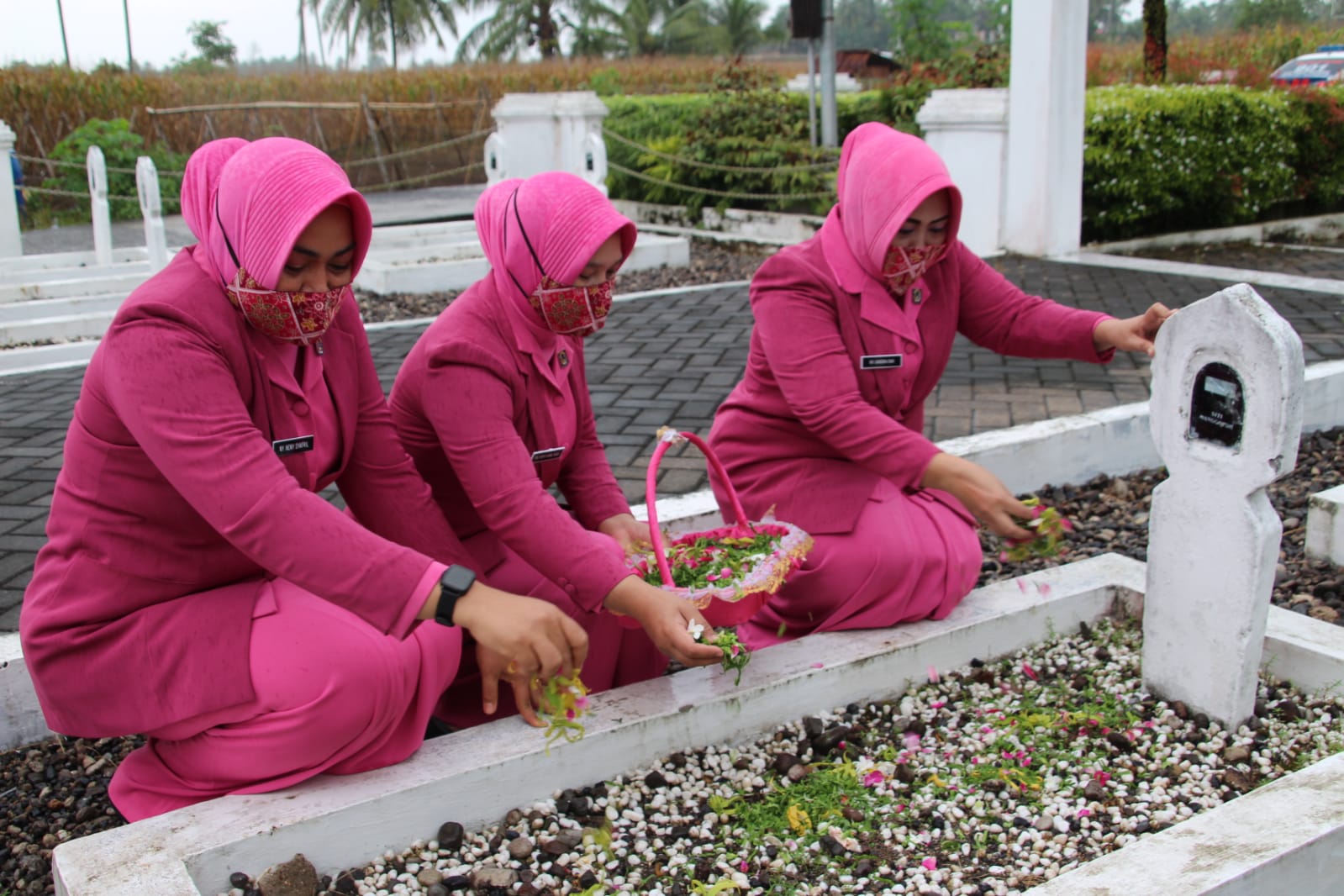 Lubukbasung, siberindo.co — Dalam rangka peringatan Hari Kesatuan Gerak Bhayangkari (HKGB) ke-69 tahun 2021, ketua Bhayangkari Cabang Agam Ny.Sandra Dwi Nur Setiawan gelar upacara khusus dengan kegiatan tabur bunga di Makam Pahlawan Mandeh Siti Manggopoh di Balai Satu, Manggopoh, Senin,(18/10).