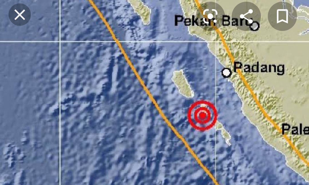 Sumbar Gempa Lagi Pusatnya 57 Km Barat Daya Pesisir Selatan