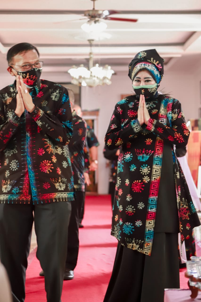 SUMBAR , Siberindo – Bupati Pesisir Selatan, Hendrajoni, melakukan launching batik motif corona dan Batik Jembatan Aka, di Pendopo rumah dinas bupati, Selasa (18/1).