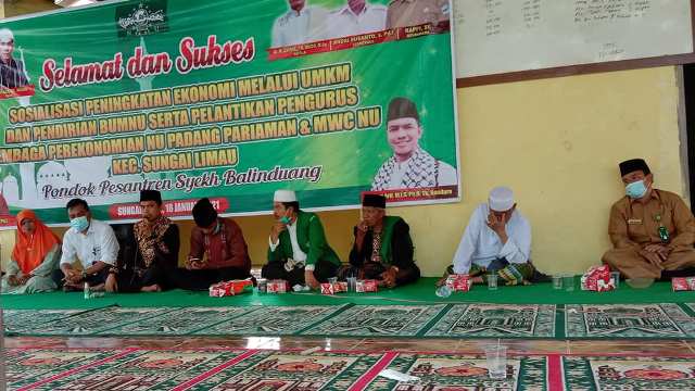 Demikian diungkapkan Ketua Tanfidziyah PCNU Kabupaten Padang Pariaman Dr. Zainal Tuanku Mudo, Senen (18/1/2021) pada pelantikan Lembaga Perekonomian Nahdlatul Ulama Padang Pariaman di Pondok Pesantren Syekh Balinduang Nagari Pilubang Kecamatan Sungai Limau Kabupaten Padang Pariaman. Selain pelantikan Lembaga Perekonomian, juga dilaksanakan pelantikan MWCNU Kecamatan Sungai Limau, Sosialisasi Peningkatan Ekonomi Melalui UMKM, dan pendirian Badan Usaha Milik NU (BUMNU).