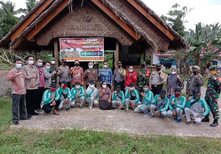 Peninjauan posko PPKM dan pelaksanaan Pilkades, rombongan di dampingi Asisten, Kasat Binmas Polres Mentawai, Pasi Intel Kodim 0319/Mentawai, Kadis Kesehatan, Sekretaris DPMPKB Mentawai dan pendamping desa.