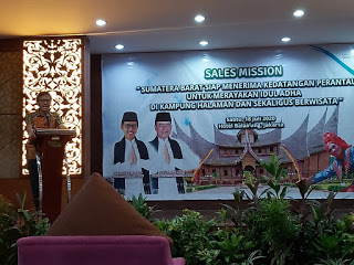 Atas nama pribadi dan pemerintahan provinsi Sumatera Barat kami menyampaikan rasa bangga dan terima kasih. Sehingga Sumbar saat ini telah dapat menerima kunjungan wisata dan perantau dengan tetap disiplin protokol covid,” ujarnya. Irwan Prayitno juga menyampaikan tujuan acara sales mission untuk menginformasikan langkah-langkah yang telah dan sedang dilakukan Pemprov Sumbar dimasa new normal dengan orientasi pemulihan ekonomi berbasis wisata.