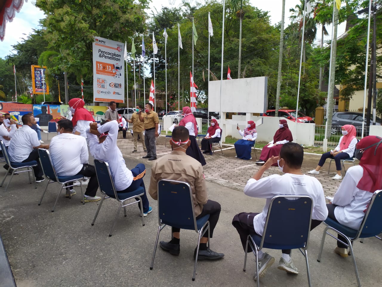 Masih dalam rangka memeriahkan hari kemerdekaan RI ke-75, KPU Sumbar Adakan outbound yang diikuti komisioner dan staf, di parkiran gedung tersebut, Rabu (19/8/2020) pagi.