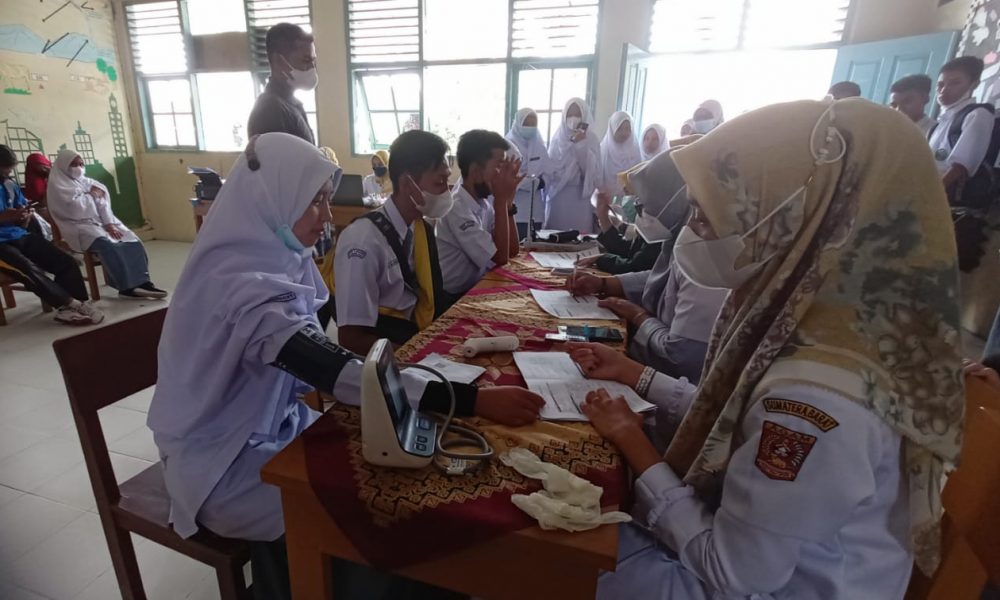 Gebyar vaksinasi massal ini digelar pihak sekolah berkolaborasi dengan Puskesmas Maninjau dan Polsek Tanjung Raya.