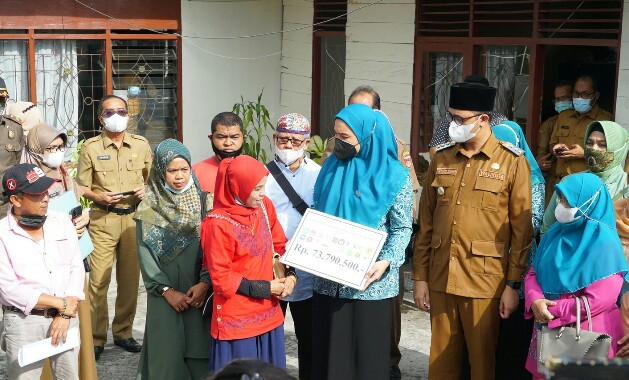 Bukittinggi, siberindo.co — Pemerintah Kota Bukittinggi bersama sejumlah organisasi perempuan dan kemasyarakatan, menyerahkan bantuan kepada korban kebakaran Pasar Bawah. Bantuan sembako dan uang tunai itu, diserahkan secara simbolis kepada korban, di Balairung rumah dinas wali kota dan posko penanganan kebakaran Pasar Bawah, Senin (20/09). Ketua TP PKK Bukittinggi, Ny. Fiona Erman Safar, menjelaskan, bantuan ini merupakan bentuk solidaritas organisasi perempuan dan organisasi kemasyarakatan yang ada di Bukittinggi untik korban kebakaran Pasar Bawah. Masing masing anggota dari setiap organisasi mengumpulkan sumbangan sukarela yang selanjutnya disalurkan hari ini berupa sembako dan juga uang tunai.