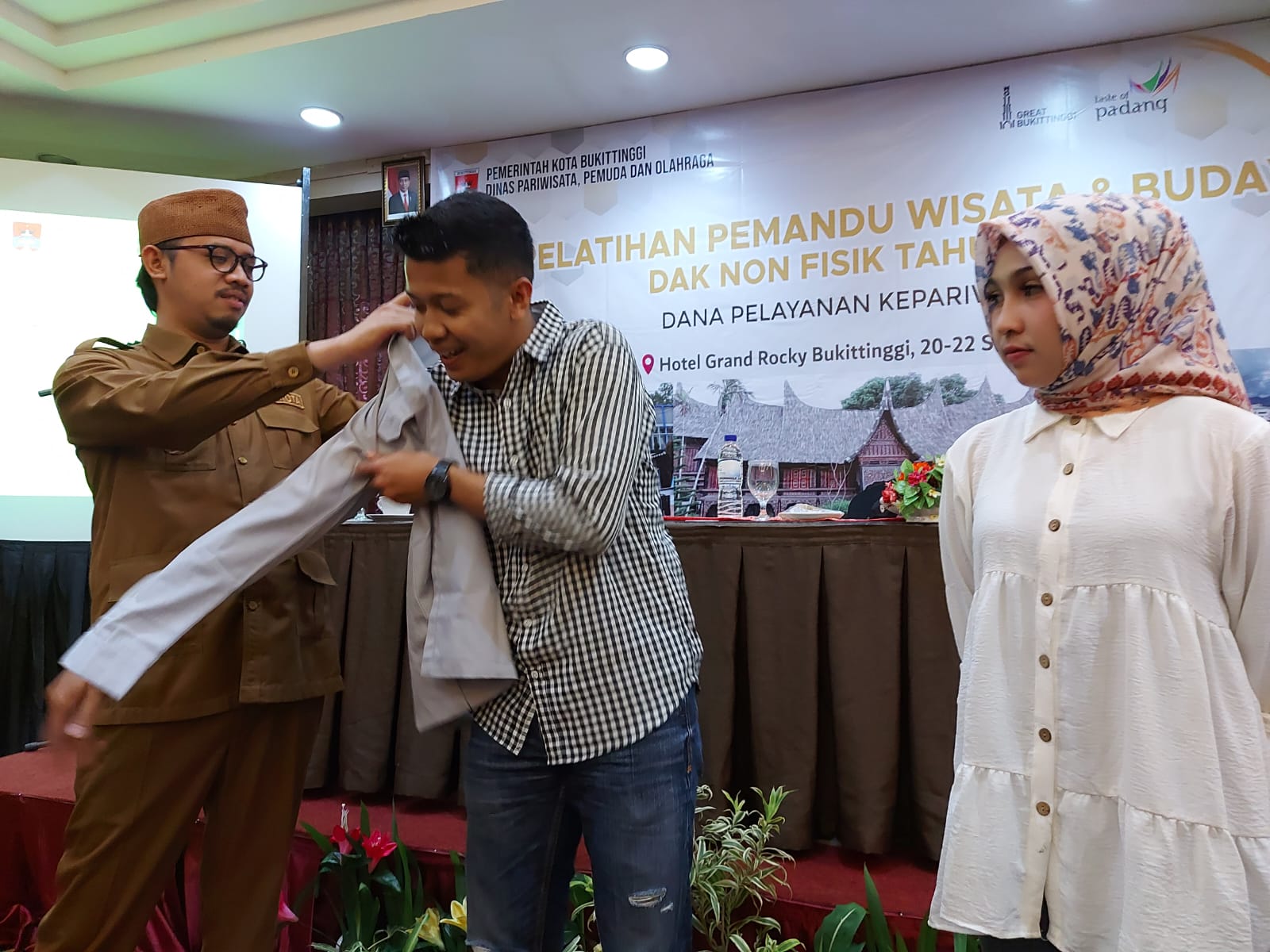 Bukittinggi, siberindo.co — Pemerintah Kota Bukittinggi melalui Dinas Pariwisata Pemuda dan Olahraga, gelar pelatihan pemandu wisata dan budaya. Kegiatan dibuka langsung Wali Kota Bukittinggi, di Hotel Rocky, Selasa (20/09).