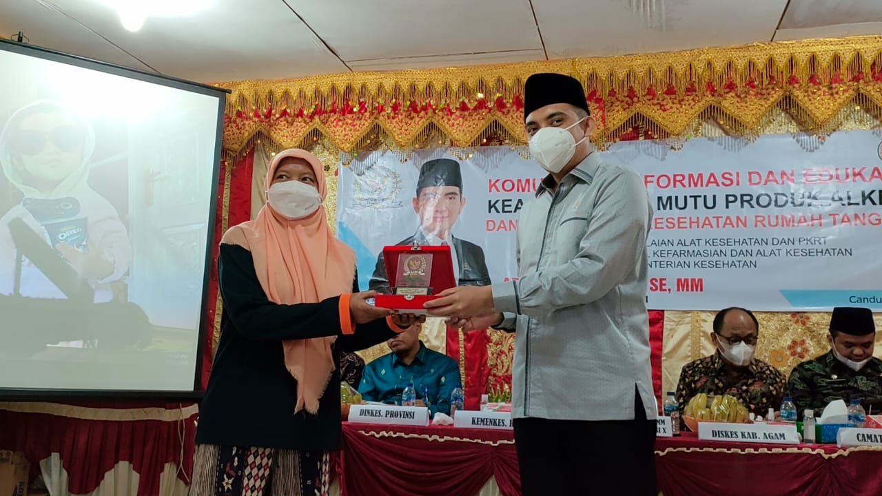 Sosialisasi itu disampaikan dalam kegiatan bersama Kementrian Kesehatan terkait komunikasi, informasi dan edukasi keamanan serta mutu produk Alat Kesehatan (alkes) dan Perbekalan Kesehatan Rumah Tangga (PKRT), di aula kantor Wali Nagari Canduang Koto Laweh, Rabu (20/10).